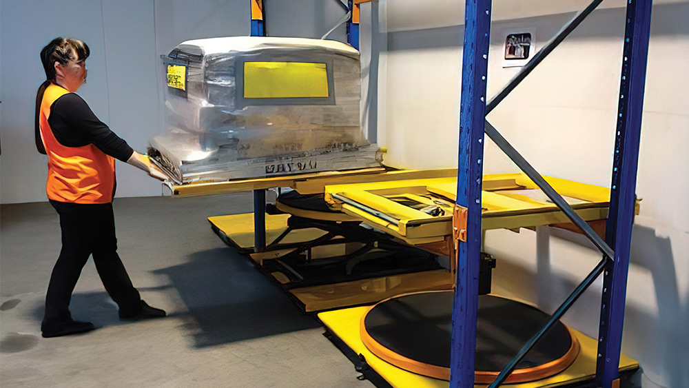 - Bringing products to the operator – sliding, rolling, or elevating pallets and cartons into easy reach